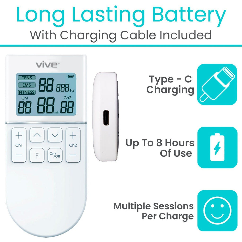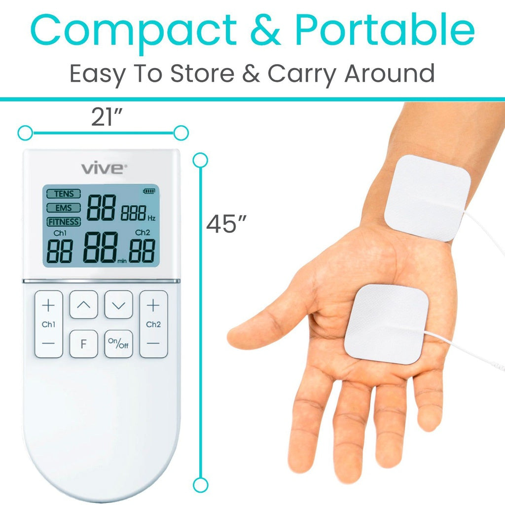 Experience comprehensive pain management with the Vive 50-Mode TENS and EMS Unit, engineered for seniors seeking effective relief and muscle wellness. This advanced device combines 20 TENS modes for pain reduction and muscle relaxation, 20 EMS modes for muscle strengthening and recovery, and 10 FITNESS modes for targeted stimulation. The intuitive LCD display simplifies mode selection, while Type C charging enables quick recharging for extended use. Multiple electrode pad shapes—square, circular, and rectangular—optimize contact and treatment effectiveness across different body areas. A complete accessory package ensures you're equipped for versatile therapeutic applications right out of the box.