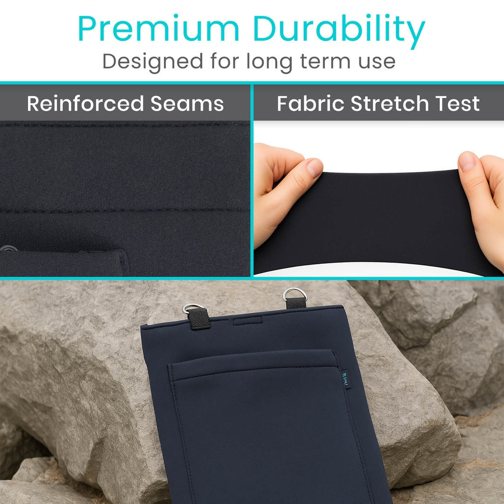 The Vive Catheter Bag Holder combines discretion with practical functionality for individuals managing catheter care. Its neutral, concealing design keeps drainage bags and tubing completely hidden, enabling confident movement throughout daily routines. The water-resistant interior with reinforced construction protects against leaks while safeguarding clothing and furniture. Versatile attachment options—including adjustable straps for walkers and wheelchairs plus a removable shoulder strap—accommodate various carrying preferences. A strategically positioned bottom zipper allows discreet access to the drainage valve without removing the bag. Designed with both privacy and accessibility in mind, this holder supports independence and dignity during catheter management.
