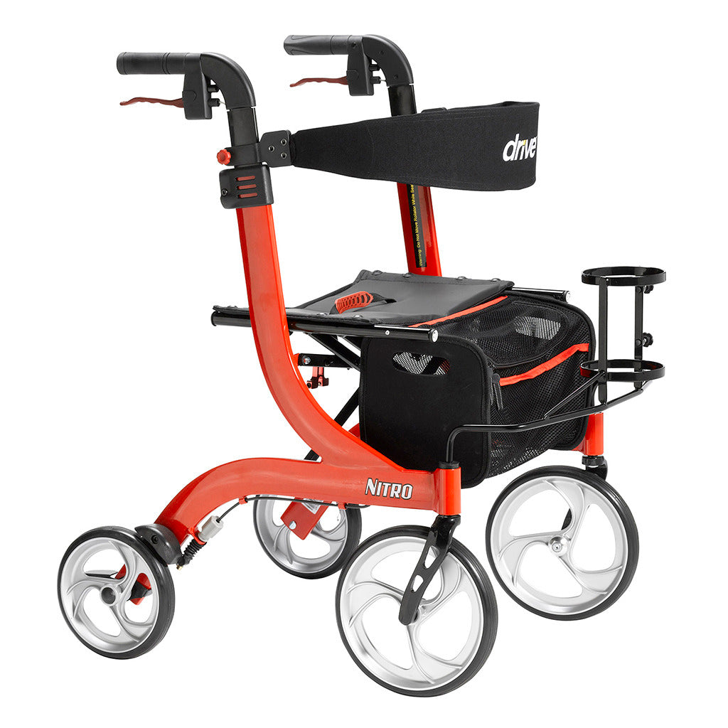 This oxygen tank holder is engineered specifically for Drive's Nitro rollator, providing secure attachment at the front without compromising mobility or functionality. It accommodates the most commonly used tank sizes—ML6/A, M4/A, M9/C, M6/B, and M15/D—making it versatile for various oxygen therapy needs. The streamlined design integrates seamlessly with your Nitro, keeping your oxygen supply accessible and organized while maintaining full use of the rollator's features. Note: This holder is compatible exclusively with the Nitro model and is not suitable for Nitro Sprint, Nitro Glide, Nitro Duet, or Nitro 3 Wheel variants.