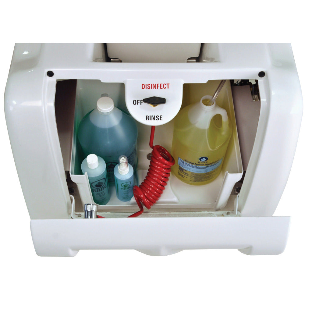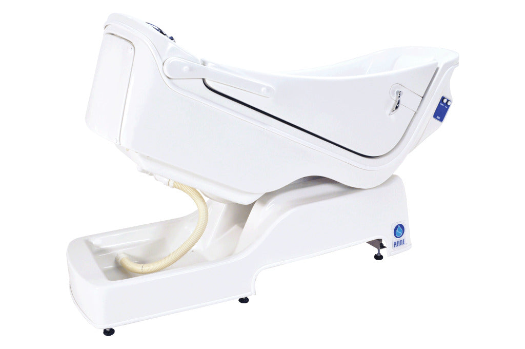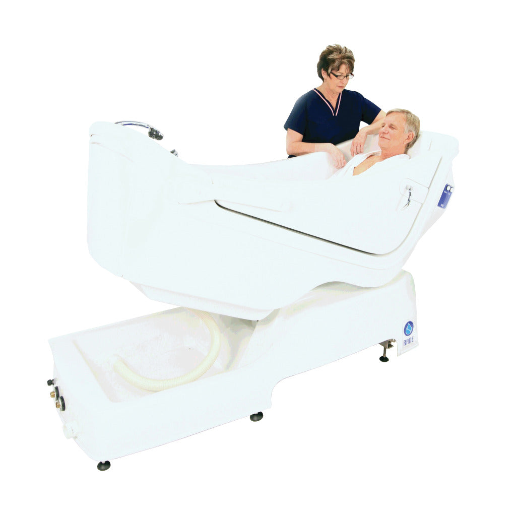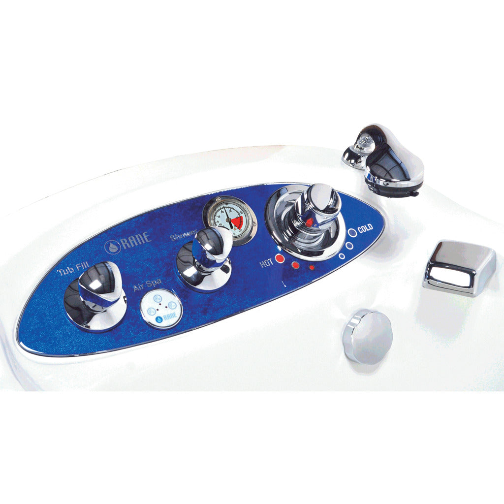 The Saratoga Spring Bathing System features a thermostatic mixing valve, which provides anti-scald protection and a fast 15 gallons per minute fill rate. Its built-in disinfection system is conveniently located for easy access and effectively sanitizes the tub's external surfaces. With a handheld shower wand and water temperature display, this system offers a comfortable and safe bathing experience.