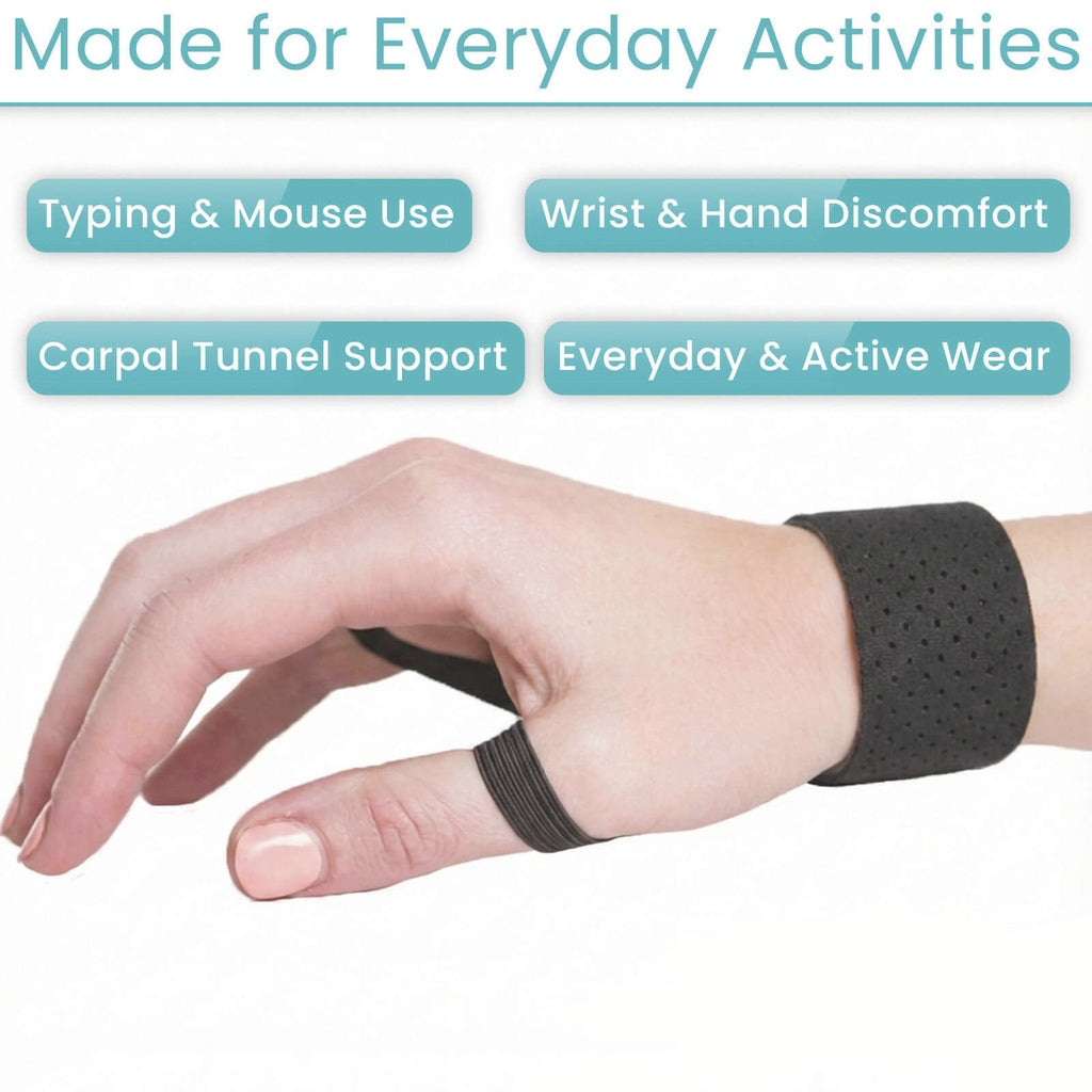 The Tunnel Tamer is a lightweight carpal tunnel support engineered to reduce pressure on the median nerve while maintaining wrist stability during repetitive activities. This minimalist device employs consistent tension to support muscle strengthening and prevent excessive wrist flexion that exacerbates strain. Its slim profile—significantly less bulky than conventional braces—allows discreet daily wear during office work, typing, and routine tasks. The latex-free construction combines nylon, sponge, and styrene butadiene rubber for durability and comfort. Featuring smartwatch band compatibility, the Tunnel Tamer integrates seamlessly into your routine via simple thumb and pinkie finger loops. Hand-washable and weighing just 6 grams, this evidence-based support offers a practical, non-invasive approach to managing carpal tunnel discomfort.
